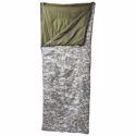Digital Camo Queen Size Sleeping Bag with a matching, extra-large 600d polyester draw sting carry bag. Polyester shell in digital camo design, solid color polyester lining. Micro polyester fiber fill. Zipper features extra-large pulls.